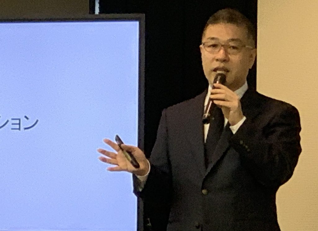 ブルーイノベーションはこのあと、自社が取り組んできた防災活動について説明した。