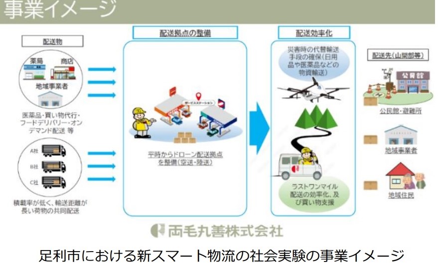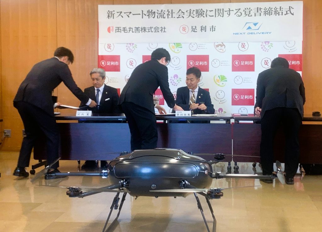 3者による覚書の締結は足利市役所内で行われた。新スマート物流の可能性について研究するため相互に協力する。具体的には足利市内で新スマート物流の拠点整備や災害発生時にも緊急物資輸送に使えるルートを検証したり、中山間地などの物流困難地域への物資輸送をしたりすることなどを盛り込んでいる。