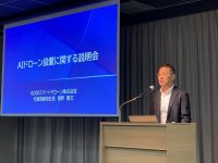 説明会では冒頭、KDDIスマートドローンの博野雅文代表取締役社長が、石川県内の輪島市に2台、七尾市に2台のドローンを配備したことを説明し、日本国内に1000台のAIドローンを配備する計画が具体的に始まったことを説明した。