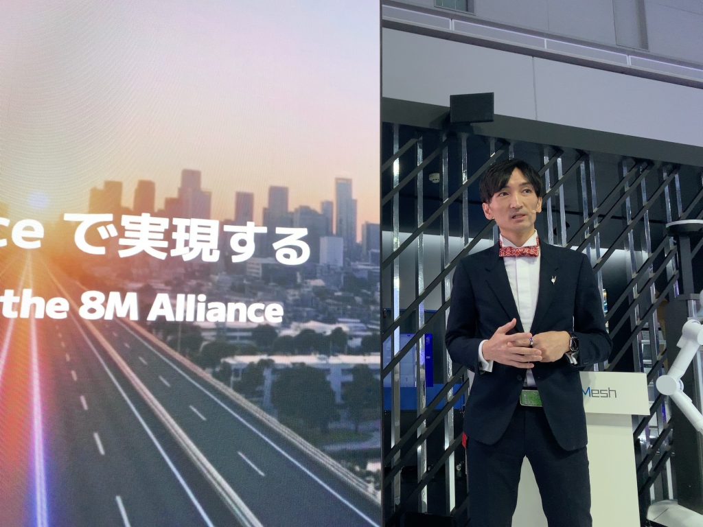 AI時代に需要が高まることが見込まれる可搬型エッジデータセンター開発のQuantum Mesh株式会社(クオンタムメッシュ、東京)は、ブースに映画『トロン:アレス』(ウォルト·ディズニー·ジャパン配給)に登場するトロンバイク「ライトサイクル」を展示する。関心を寄せて立ち寄ると同社の取り組みであるサーバーを冷却液にまるごと浸す液浸サーバー冷却システム『KAMUI』を目にすることになる。大都市の大規模データセンターと異なるトレーラーなどで運べることを特徴のひとつに掲げている。2024年にこの分散エッジAIデータセンターを稼働させ、Japan Mobility Show一般公開前には、パートナー企業とともに、AIoT時代のデジタルインフラ整備のコンセプト「AIデータステーション構想」を発表した。ブースではその構想を「8M Aliance」として紹介している。
