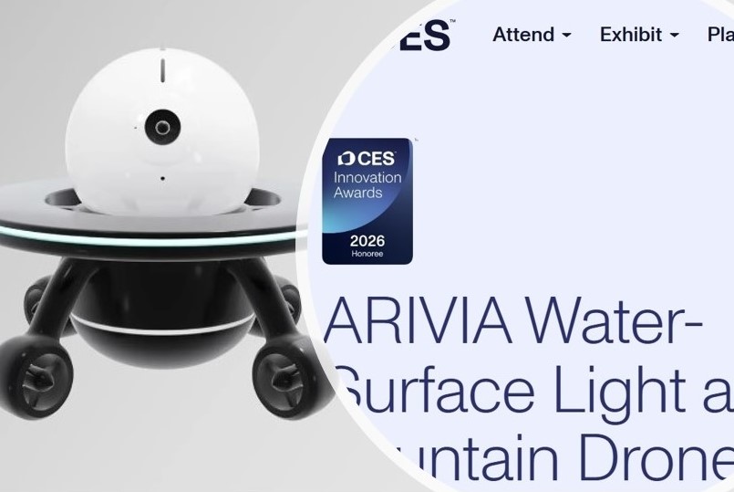歩く、走る、飛ぶ 米CaltechとアブダビTIIがヒューマノイドと空陸ドローンとの協調実証 米ラスベガスで開催される世界最大級のテクノロジー見本市「CES(Consumer Electronics Show)」を主催するConsumer Technology Association(CTA)は、2026年度の「CES Innovation Awards®」受賞者を発表した。この中で、株式会社スペースワン(SPACEONE、福島県郡山市)が開発した水上型ドローン「ARIVIA (アリヴィア)Water-Surface Light and Fountain Drone」が、ドローン部門のHonoree(優秀製品)として選定された。