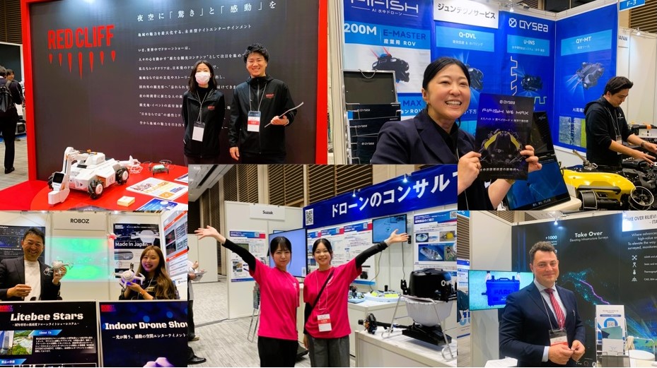 会場では多くのブースで来場者と出展者が意見交換をしたり、説明を求めたりしている様子がみられ、あちこちで笑顔がはじけていた。ジュンテクノサービスやMizubiyoriは会場内に設置されたプールで水中ドローンを実演し、来場者に囲まれていた。