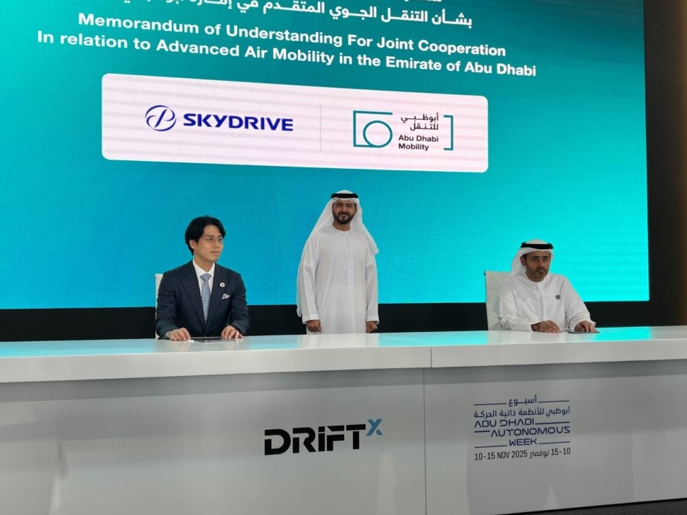 SkyDriveがアブダビのITCとのMOUの調印式は、2025年11月11日にアブダビで開催された自動運転技術、ドローン、スマート交通インフラをテーマとした国際的なイベント・展示会「DRIFTx 2025」で行われた。今回のMOUでSkyDriveは同社の「SKYDRIVE(SD-05)」をアブダビの都市交通に活用する可能性を探る。離着陸場としてのヴァーティポート整備や充電インフラの検討、AAMのエコシステム形成、需要調査を含む事業化の検討などが中心となるとみられる。SkyDriveはITCと協力してAAMの導入に必要となる制度面の調整や技術要件の整理も進めていく姿勢を示している。